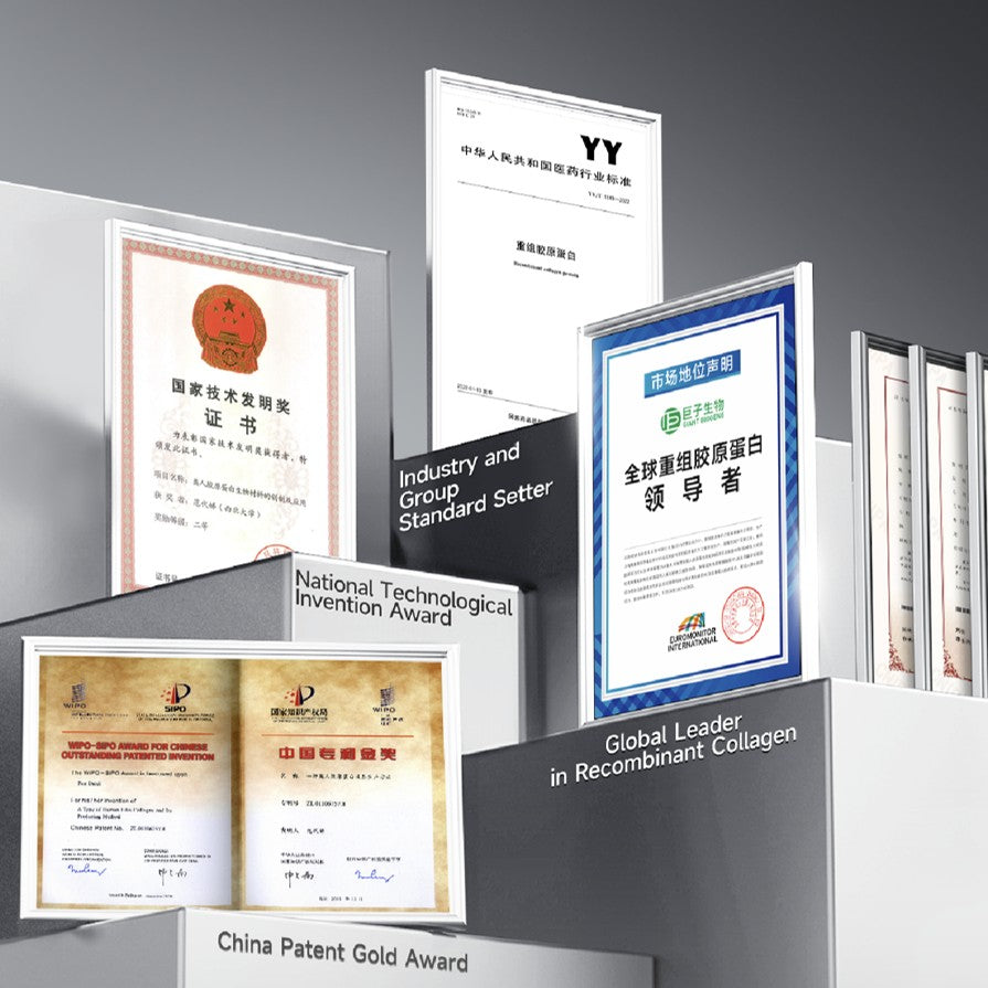 中国初となるリコンビナントコラーゲンの発明特許を取得。国家技術発明賞(二等賞)および中国特許金賞をはじめとする多くの賞と特許を取得しています。